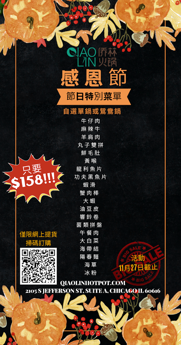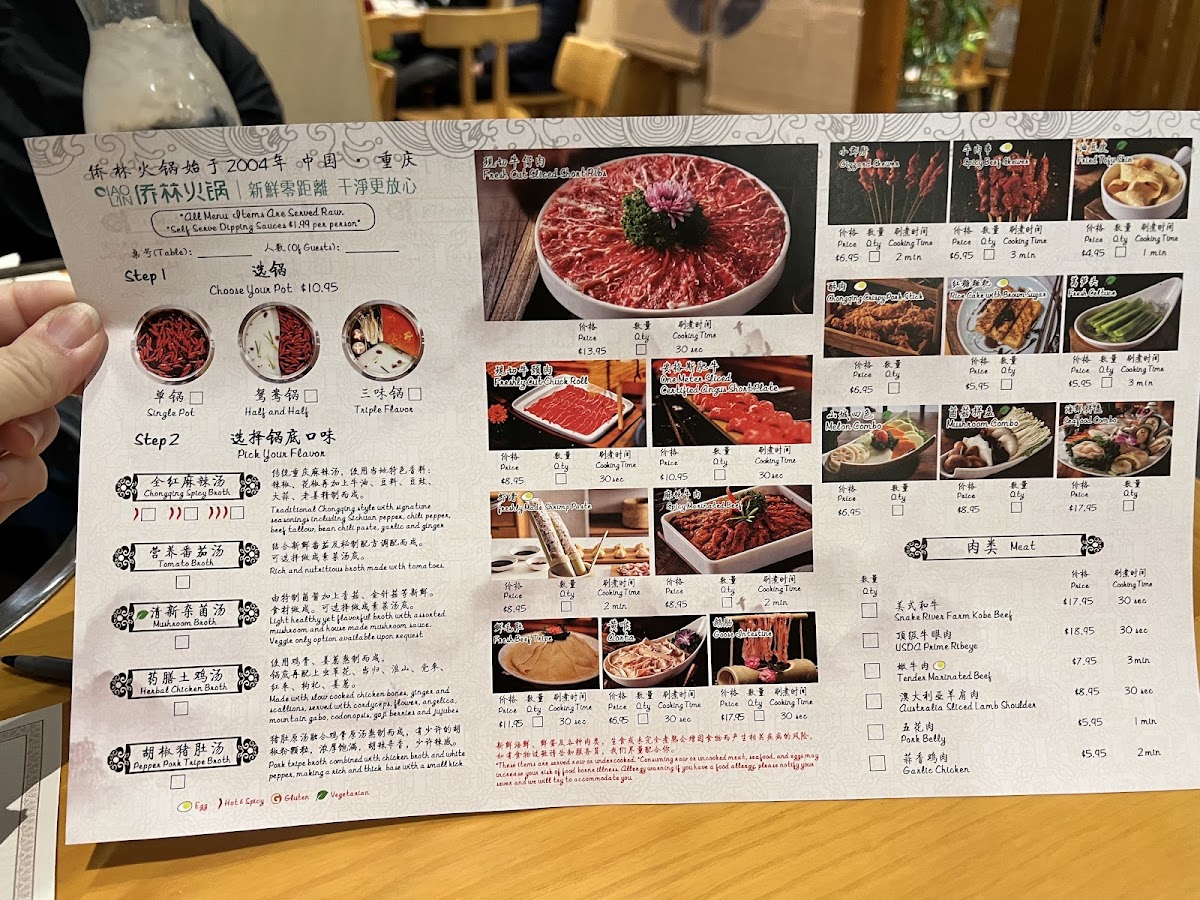 Welcome to Qiao Lin Hotpot in Chicago's vibrant Chinatown, where flavor meets tradition in an unforgettable dining experience. Their menu offers an array of fresh ingredients, allowing you to customize your hot pot feast. Choose from selections like Marinated Beef and Brined Pork Intestine, along with a broad variety of vegetables and dipping sauces.